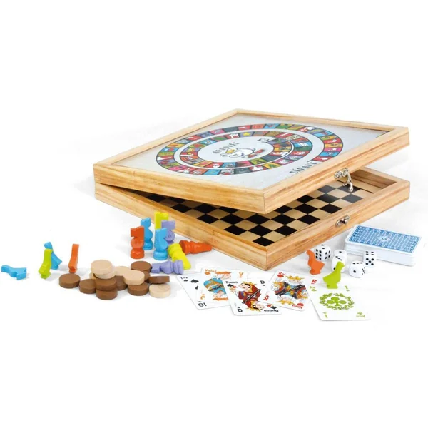 COFFRET EN BOIS DE JEUX DE SOCIETE TRADITIONNELS