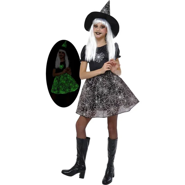 DEGUISEMENT SORCIERE TOILE D’ARAIGNEE PHOSPHORESCENT TAILLE 8-10 ANS