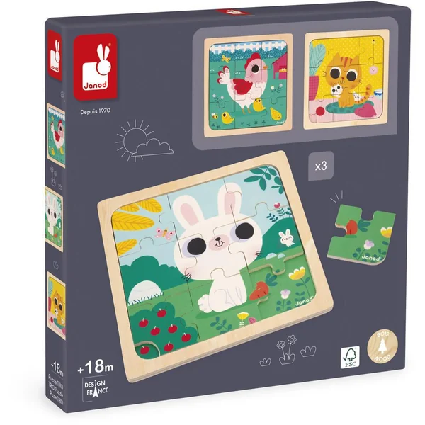 PUZZLES EN BOIS 4 PIECES BEBES ANIMAUX