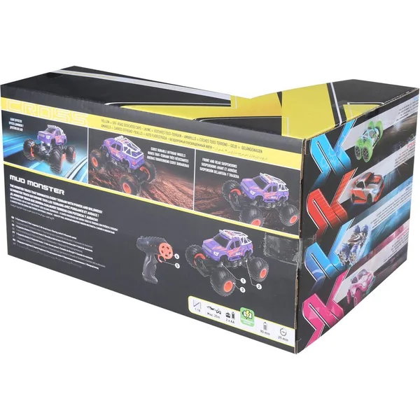 Avec son look de Monster Truck, la voiture radiocommandée Exost Mud Monster est prête à relever tous les défis ! Équipée de gros pneus chartés Exost et de suspensions robustes, elle franchit sans peine les obstacles. Grâce à sa technologie 2.4 Ghz, elle offre une portée de 25 m et une conduite fluide. Compacte mais puissante, elle atteint une vitesse de 10 km/h et dispose d’une autonomie d’environ 20 minutes. Le véhicule fonctionne avec une batterie rechargeable incluse, la télécommande nécessite 2 piles AAA (non incluses).