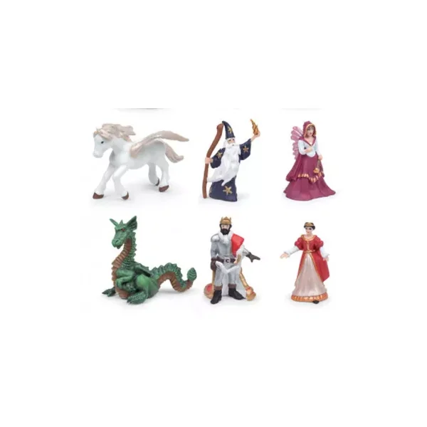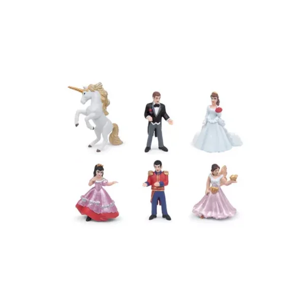 Découvrez les 12 mini figurines monde enchanté Papo, 12 personnages sur le thème des princes et des princesses pour les enfants dès 3 ans. Un coffret complet avec une licorne, un dragon, un pégase, un magicien, une roi et une reine, deux elfes, un prince et sa princesse, une mariée et son époux.