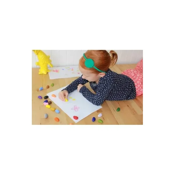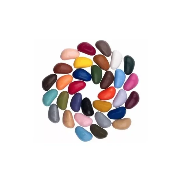 De jolis cailloux colorés et doux à manipuler qui favorisent la créativité, des crayons qui ne cassent pas et qui ne tâchent pas les doigts.