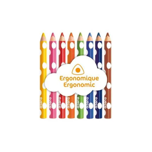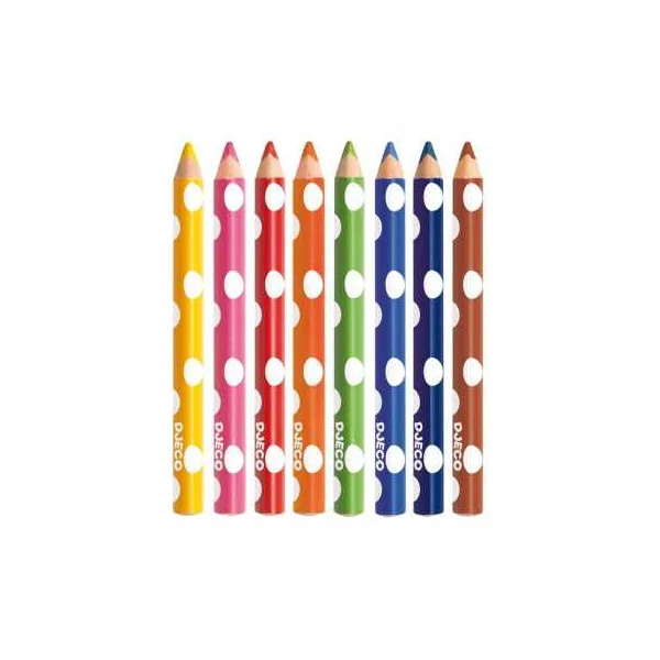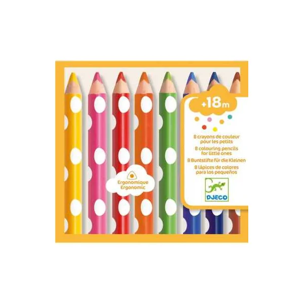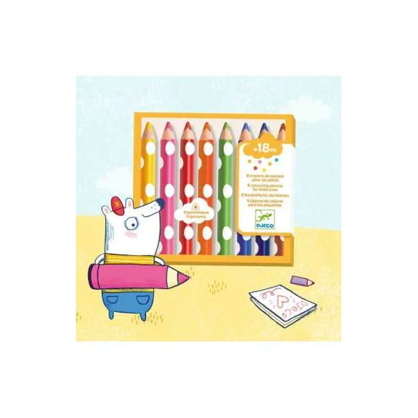 Découvrez les 8 crayons de couleur pour les petits de Djeco, 8 crayons ergonomiques pour les enfants dès 18 mois. De gros crayons faciles à tenir pour faire de jolis dessins ou coloriages.