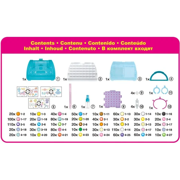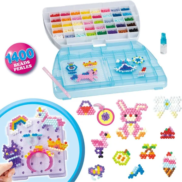 Avec 1400 perles de formes et de couleurs variées, y compris des perles étoiles, les possibilités de création sont infinies. Les enfants peuvent réaliser des bijoux personnalisés comme des bagues et des bracelets, ou encore ajouter des détails charmants tels que des fleurs ou des lapins sur leur sac. Le principe est simple : assemblez les perles, vaporisez de l’eau et laissez sécher, et vos créations prennent vie.
