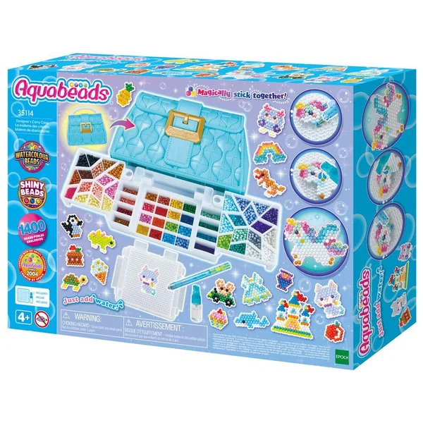 Avec 1400 perles de différentes formes (dont les perles aquarelles) et couleurs, et tout ce qu’il faut pour des heures de créativité avec Aquabeads ! Dès 4 ans.