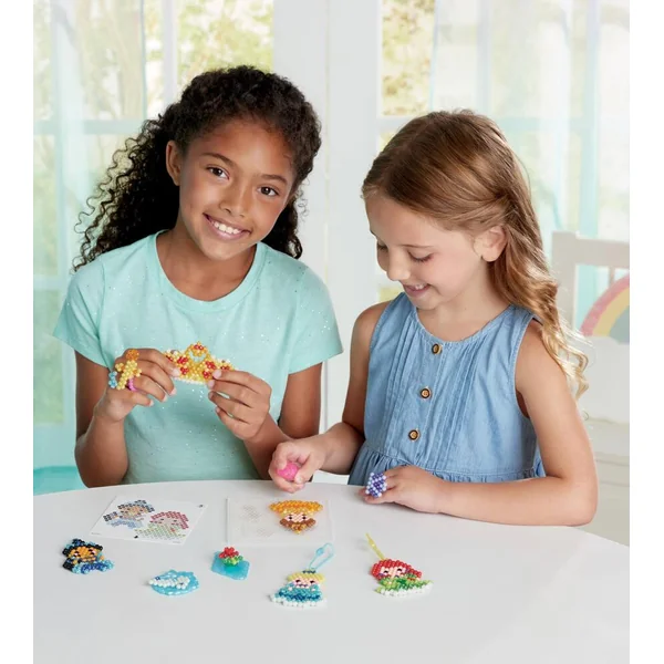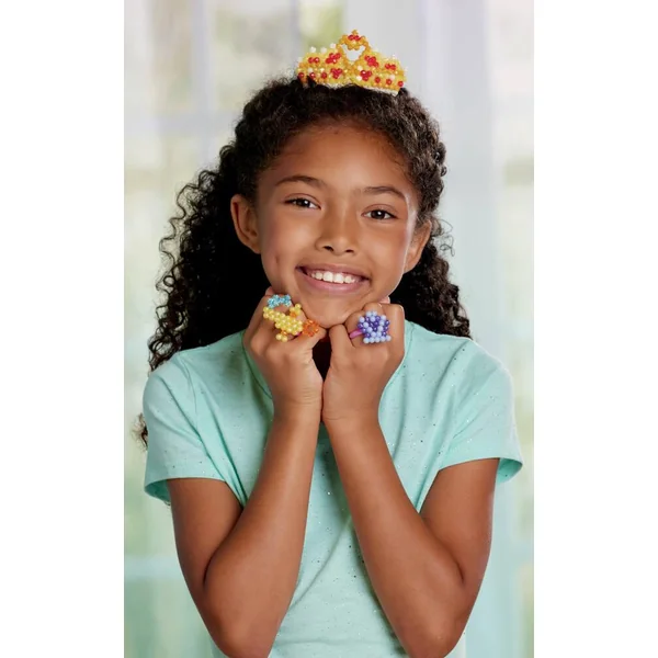 Retrouve Ariel, Cendrillon, Belle, Jasmine et leurs nombreux accessoires ! Tu peux réaliser des bagues, pince à cheveux, pendentifs ou porte-clés aux thématiques de leurs contes de fées – Le principe est simple : assemble les perles, vaporise de l’eau, laisse sécher et c’est prêt – Avec des perles de différentes formes (dont les perles éclat) et couleurs, et l’essentiel pour des heures de créativité avec Aquabeads –
