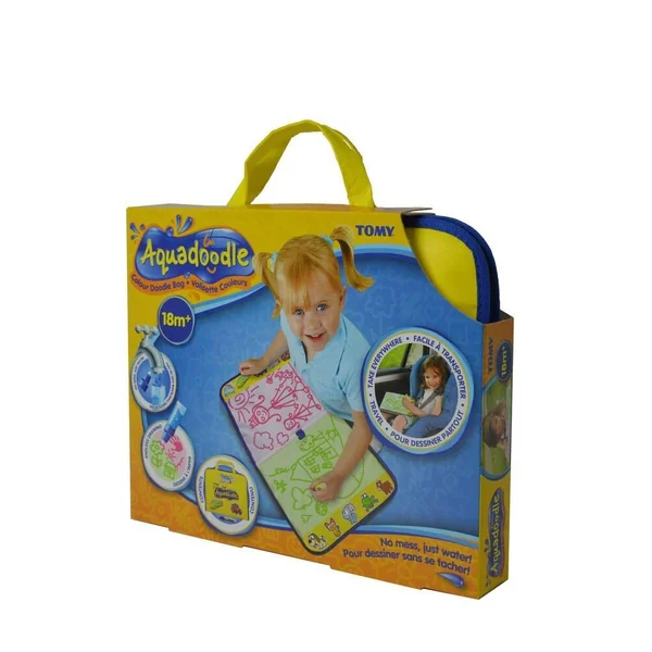 Retrouvez Aquadoodle en format voyage avec la valisette Aquadoodle. Une valisette à emporter partout avec soi pour colorier sans se tacher, à l’infini et en couleurs ! Futé : le stylo fonctionne à l’eau pour éviter tout risque de taches ! Pratique : sa petite taille et sa poignée permettent de l’emmener partout avec soi. Idéal pour les départs en vacances ! Bien conçue : deux faces pour pouvoir continuer à dessiner pendant que l’autre côté sèche! La valisette est rigide et permet ainsi de dessiner facilement quand elle est posée sur les genoux, en voiture, par exemple. Un plaisir infini : au bout de quelques minutes, l’eau s’évapore et le dessin disparaît. L’enfant peut recommencer à l’infini !