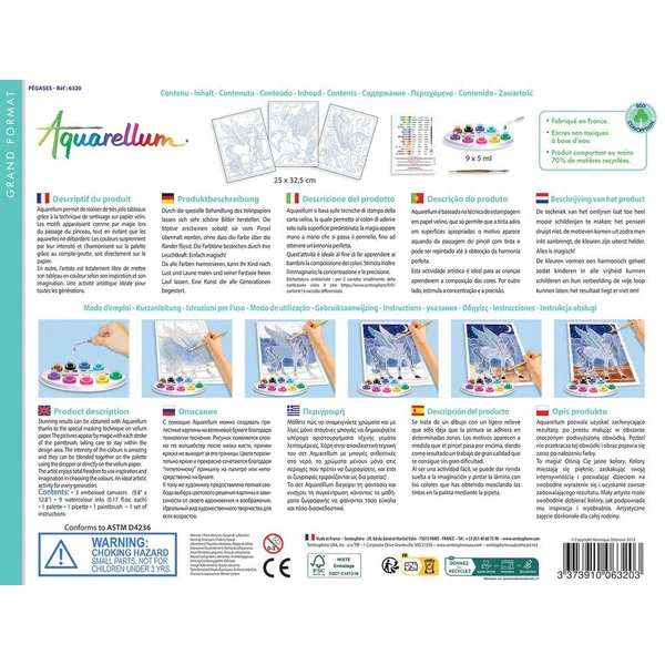 Découvrez l’univers enchanteur d’Aquarellum – Pegases. Ce kit d’activités créatives et manuelles est conçu pour éveiller la créativité des jeunes artistes dès l’âge de 7 ans. Grâce à une technique innovante de sertissage sur papier vélin, chaque coup de pinceau révèle des motifs captivants et des couleurs éclatantes.
