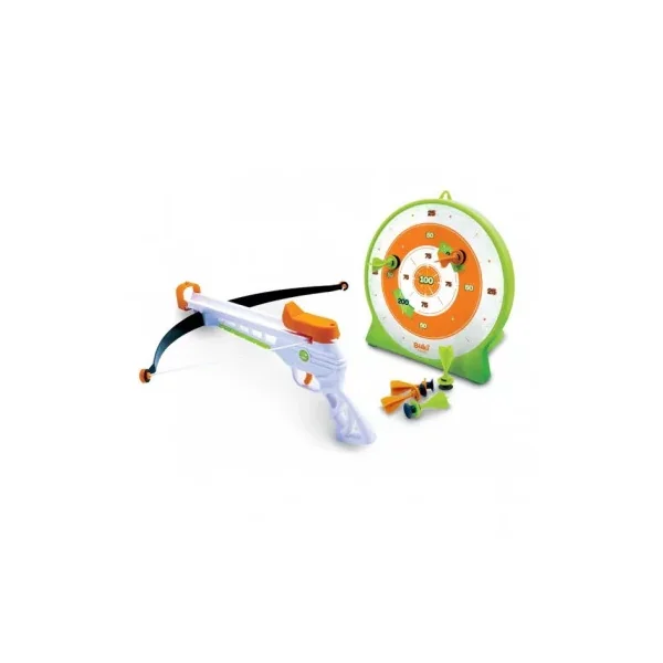 Une arbalète pour s’entraîner au tir en toute sécurité! Son mécanisme et ses fléchettes-ventouse permettent une utilisation sans risque. 6 fléchettes et une cible à emporter partout sont incluses dans le coffret.