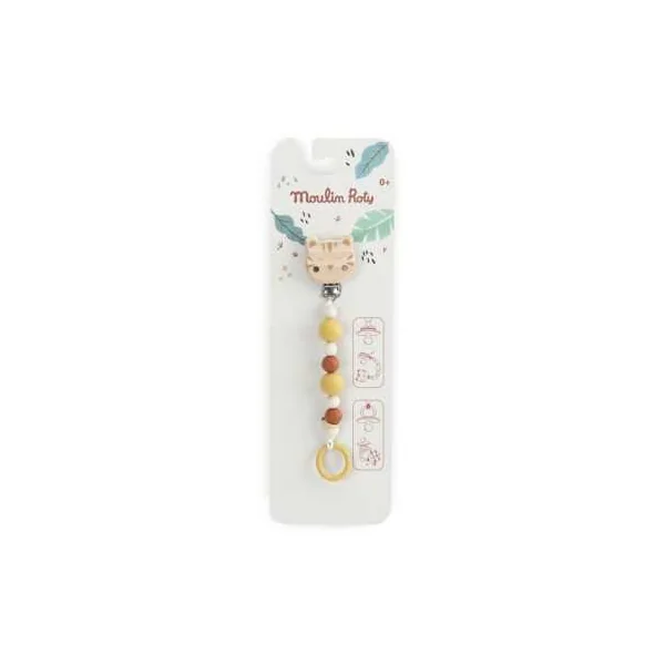 Découvrez l’attache tétine tigre bois silicone de la collectionLa forêt Mawa de Moulin Roty, un cadeau de naissance utile et pratique pour les bébés.