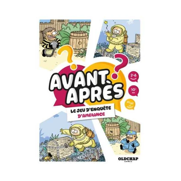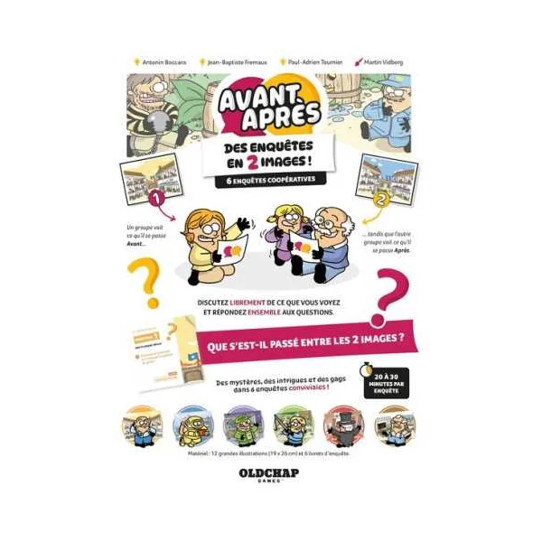 Découvrez le jeu Avant Après de Oldchap Games, un jeu d’ambiance pour jouer de 2 à 6 joueurs, à partir de 10 ans avec 6 enquêtes drôles et coopératives à résoudre. Un jeu d’enquête en deux images!