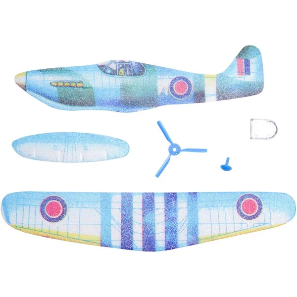 Prêt pour le décollage ! Avion modèle Mustang, en polystyrène 3 pièces et une hélice en plastique, facile à assembler présenté dans son sachet illustré. 5 autres modèles d’avions ont été créés pour compléter la collection !