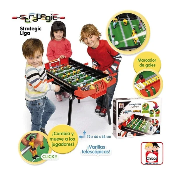 Avec le baby-foot Strategic Football League, le plaisir du baby-foot est sans limite. Les plus petits pourront faire leurs premières parties sur ce baby-foot équipé de barres télescopiques et d’un tableau d’affichage pour suivre le score. De plus, les joueurs peuvent être déplacés et disposés à leur guise grâce à un système simple de changement de position. D’un simple clic, on passe d’une défense à trois à un jeu avec seulement deux défenseurs centraux ! Fabriqué en plastique robuste.