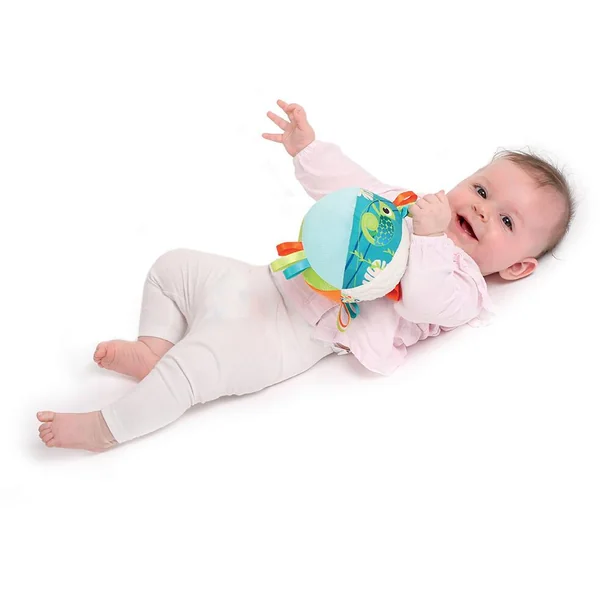 Cette balle d’éveil Caméléon aux multiples textures douces et multiples activités dont le papier froissé et les petits rubans – Idéal pour l’éveil de bébé dès 3 mois, elle aide à stimuler sa motricité.