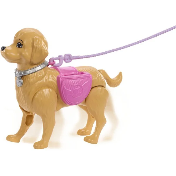 Barbie promène son chien ! 2 actions mécaniques animent le chien, pour la marche ou pour faire ses besoins. + de 7 accessoires de maternage sont inclus. La poupée Barbie peut sortir faire une agréable promenade avec son chien qui marche et fait ses besoins !