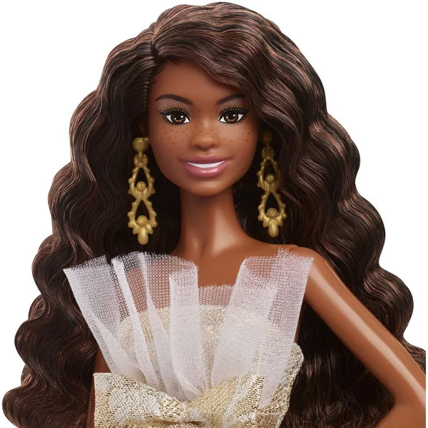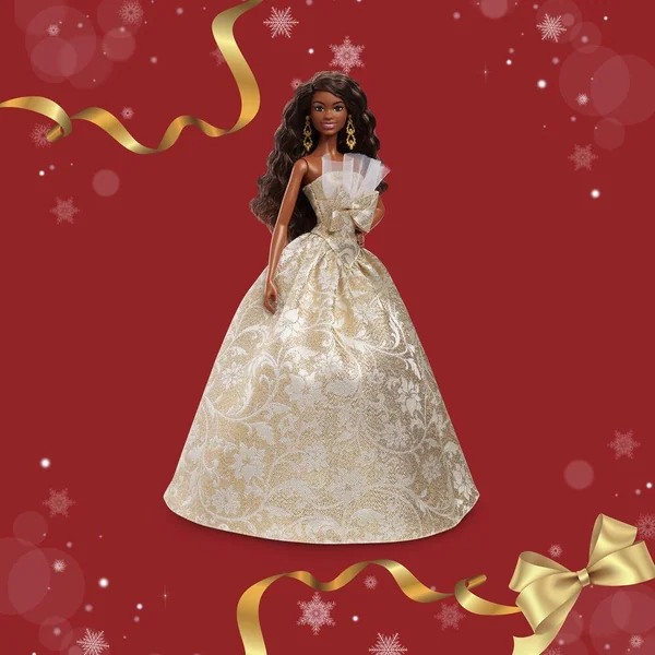 Célébrez la saison avec la Barbie Joyeux Noel 2025 arborant un look glamour et festif comprenant une robe élégante et des accessoires sophistiqués.Embargo 30/07/2025