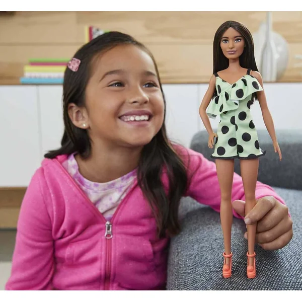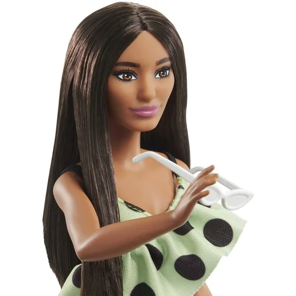 Les poupées Barbie Fashionistas célèbrent la diversité et offrent des possibilités infinies de narration et d’exploration de la mode. Avec cette gamme complète de poupées, les enfants peuvent voir à quel point il est amusant d’exprimer sa personnalité à travers le style ! C’est un cadeau idéal pour tous les enfants qui aiment la mode. Les poupées ne tiennent pas debout toutes seules. Les couleurs et les décorations peuvent varier. Cette Barbie porte une combi verte à volants, une paire de lunettes et des sandales aux pieds.