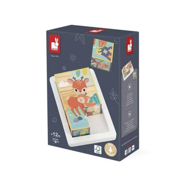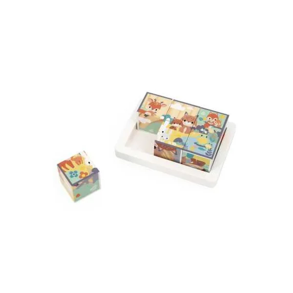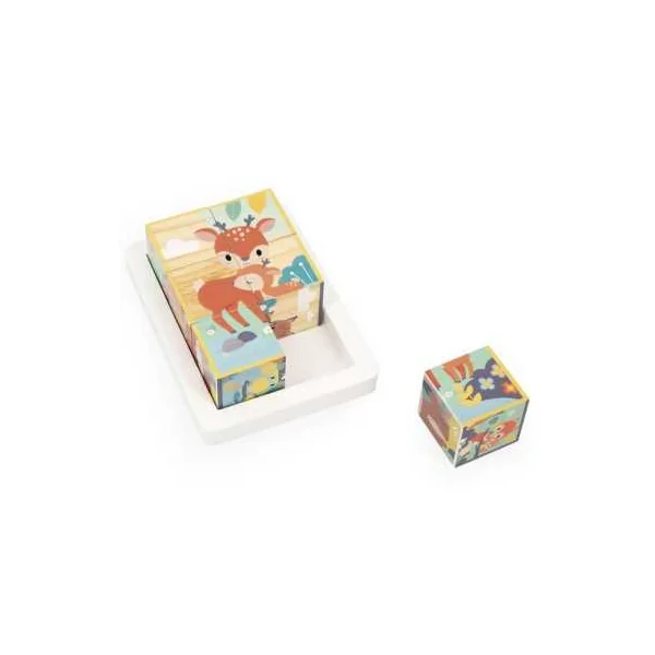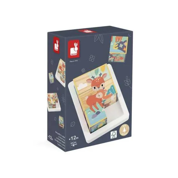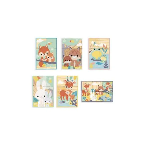 Découvrez la barquette 6 cubes de la collection Pure de Janod, 6 cubes en bois présentés dans une barquette avec 6 illustrations aux couleurs douces représentant des animaux avec leur petit : des écureuils, des faons, des grenouilles, des lynx et des lapins. Un cadeau ludique pour les enfants de 1 à 3 ans.
