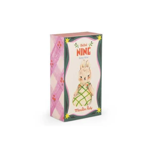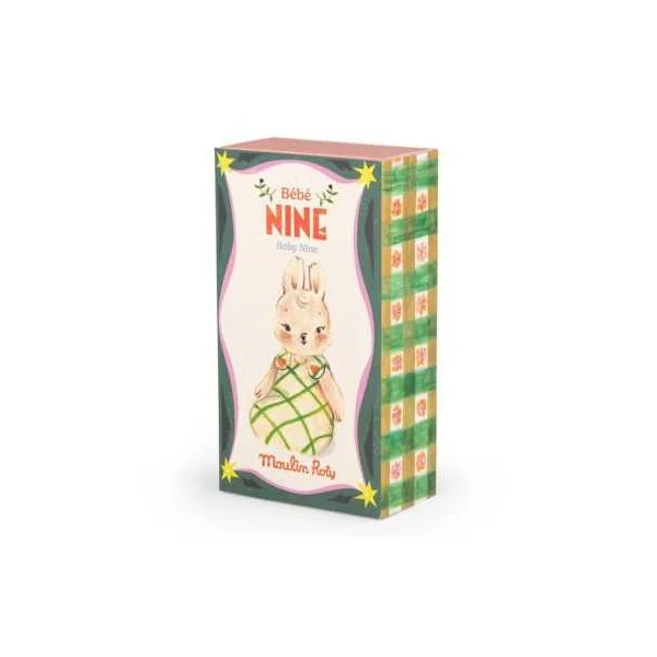 Découvrez Bébé Nine la lapine de la collection Les Minouchkas de Moulin Roty, une adorable poupée de 14,5 cm imaginée par l’artiste Lucille Michieli, à offrir aux enfants dès la naissance.