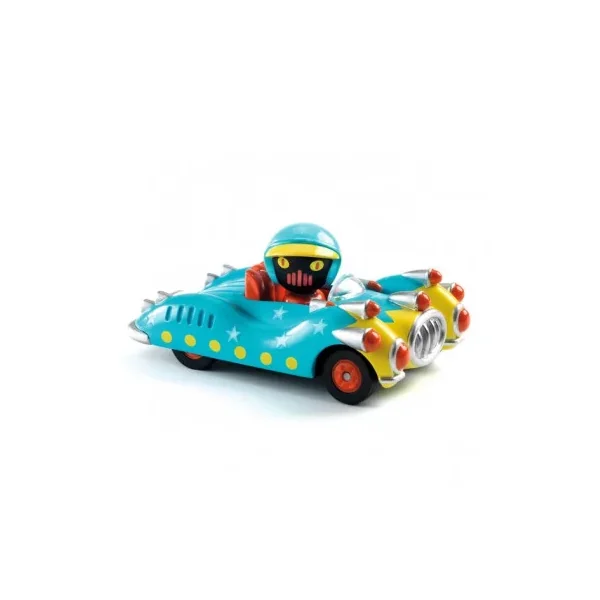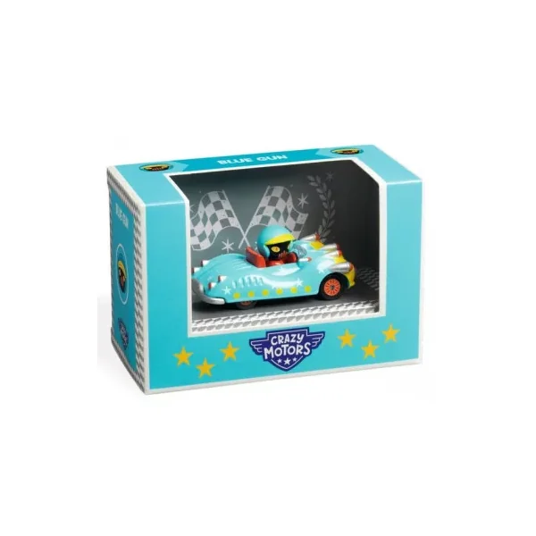 Découvrez Blue Gun de la collection Crazy Motors de Djeco, une voiture de course en métal avec son pilote de course. Un jouet pour les enfants de 3 à 9 ans.