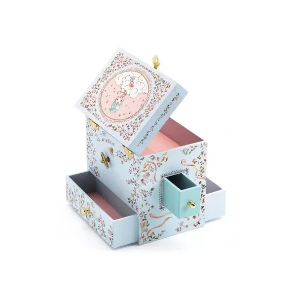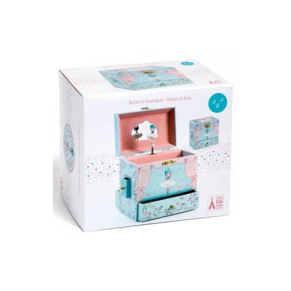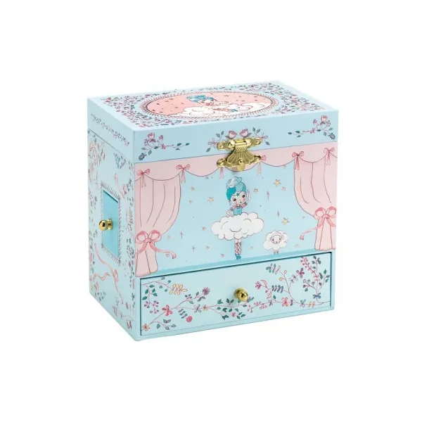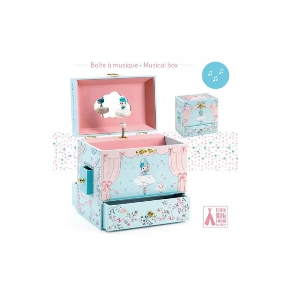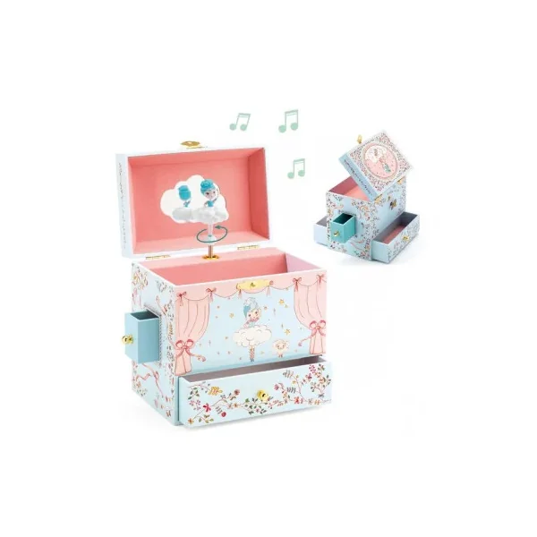 Découvrez la boite à musique « Ballerine en scène » de Djeco, une jolie boite à bijoux musicale qui plaira beaucoup aux jeunes enfants grâce à ses compartiments secrets et sa la mélodie « Romance de l’amour ».