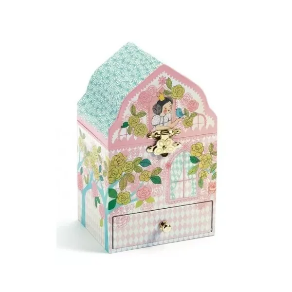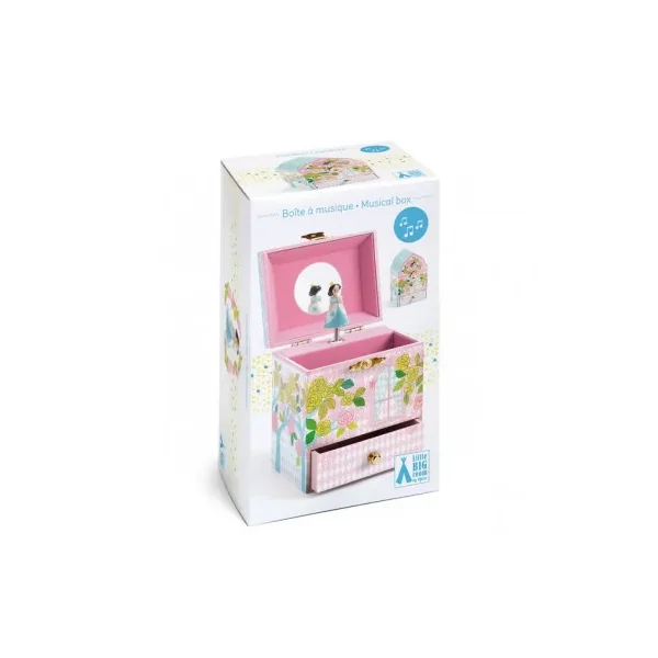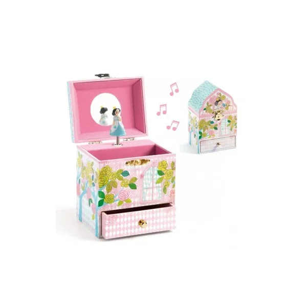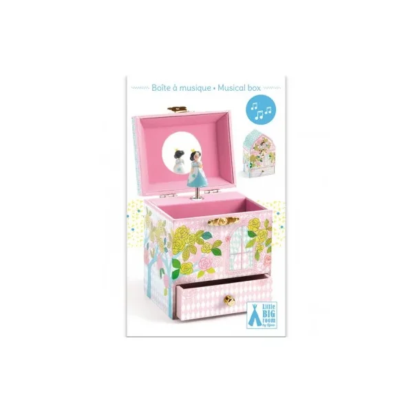 Une jolie boite à musique Djeco avec un grand compartiment pour ranger tout ses trésors et un tiroir pour ses secrets. Votre enfant ouvrira son palais, s’admirera devant le miroir et regardera danser la princesse qui s’animera en musique à l’ouverture de la boite.