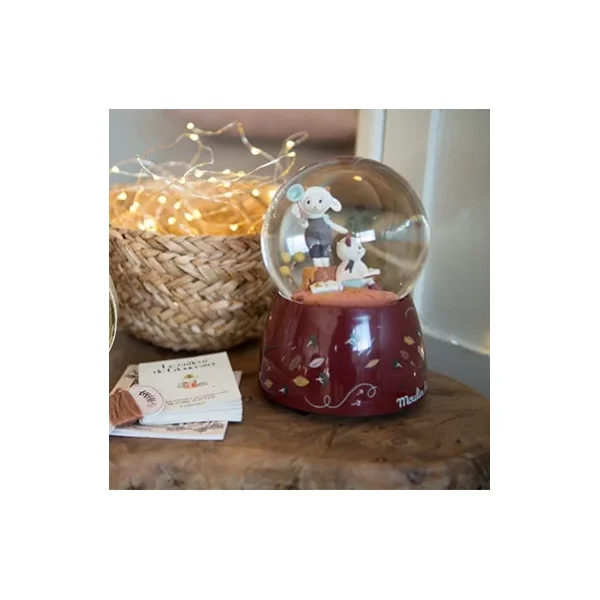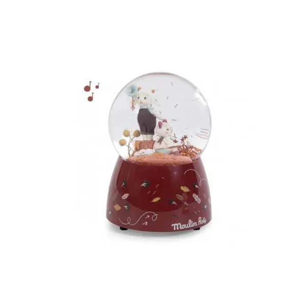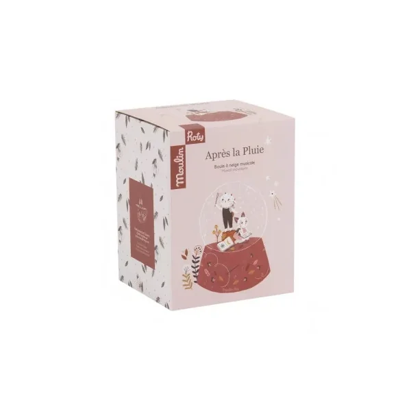 Découvrez la boule à neige musicale de la collection Après la pluie de Moulin Roty, une boite à musique en forme de boule à neige qui fera un magnifique cadeau décoratif pour la chambre de bébé. Une boule à neige musicale avec Brume en pleine lecture et Nuage debout pour attraper les paillettes brillantes.