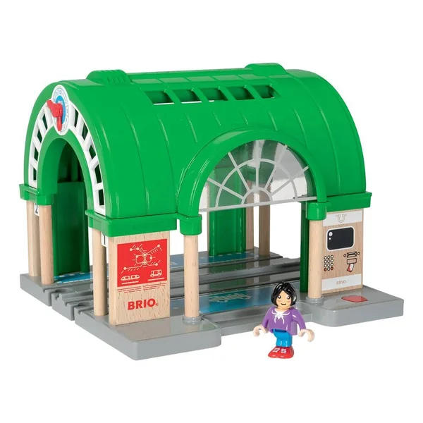 Tous à bord ! La gare centrale possède 2 voies de rails et émet un vaste éventail de sons depuis le guichet automatique. C’est une pièce centrale parfaite pour déployer autour votre réseau de chemin de fer. C’est là que démarre l’aventure pour les passagers et vous seul savez où ils vont aller. N’oubliez pas d’acheter vos billets ! Inclut un personnage. Une pièce imposante et robuste qui sera la pièce maîtresse de votre réseau de chemin de fer pour de nombreuses années.