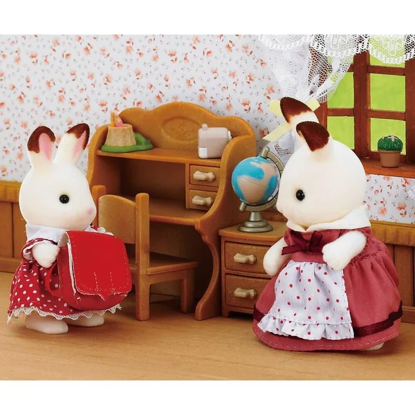 Un superbe bureau pour étudier ou dessiner. Inclus : 1 figurine Fillette Lapin Chocolat. Accessoires : 1 bureau avec 1 caisson 2 tiroirs, 1 chaise, 1 mappemonde, 1 cartable, 1 pot à crayons avec 2 crayons, 1 taille crayons. Gamme développée avec une grande exigence de qualité.