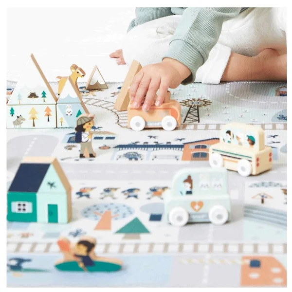 Avec ce joli bus à motifs rayés, les locaux comme les touristes se rendent à la gare ou encore au camping ! Sa forme a été pensée spécialement pour une prise en main optimale pour les petits, qui peuvent facilement le tenir par le haut pour le faire rouler. Les véhicules sont parfaits pour inventer de nombreuses histoires et développer son imagination ! Les bébés s’amusent d’abord à les faire rouler, puis les plus grands se racontent toutes sortes d’aventures et développent leur vocabulaire et leur créativité. Cette petite voiture Janod est issue de notre collection Cross Roads : une série de tapis de jeu avec circuits, encore plus ludiques quand ils sont complétés par nos sets de cubes et nos petits véhicules en bois. Le bus convient particulièrement au tapis de jeu Vallée Blanche, mais s’associe tout aussi bien avec d’autres tapis de la gamme.