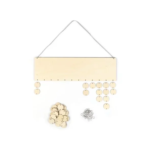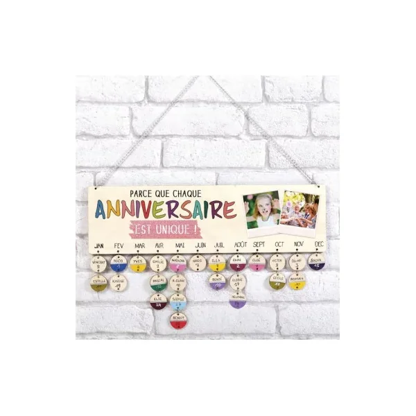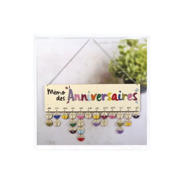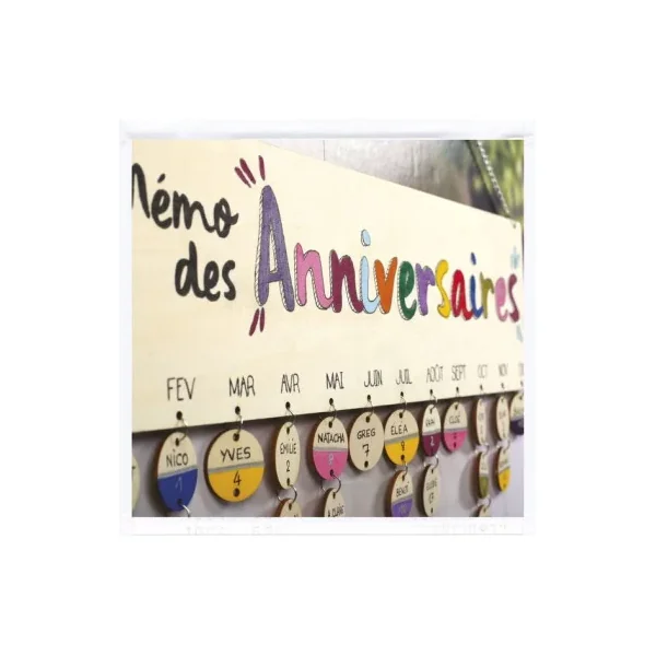 Un joli cadeau à réaliser en famille permettant de confectionner soi-même un calendrier des anniversaires en bois mesurant 42 cm x 12 cm x 5 mm.