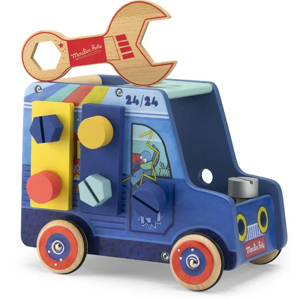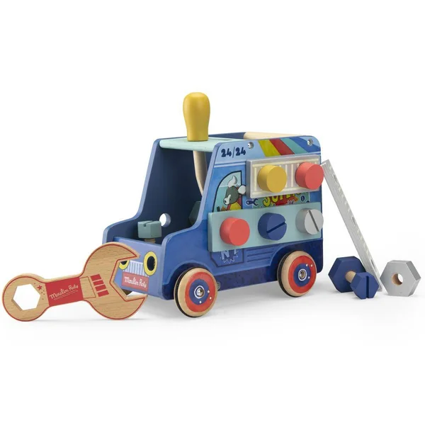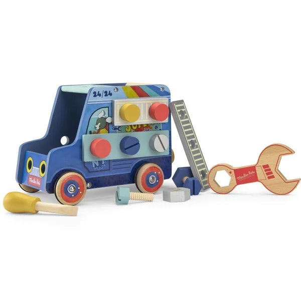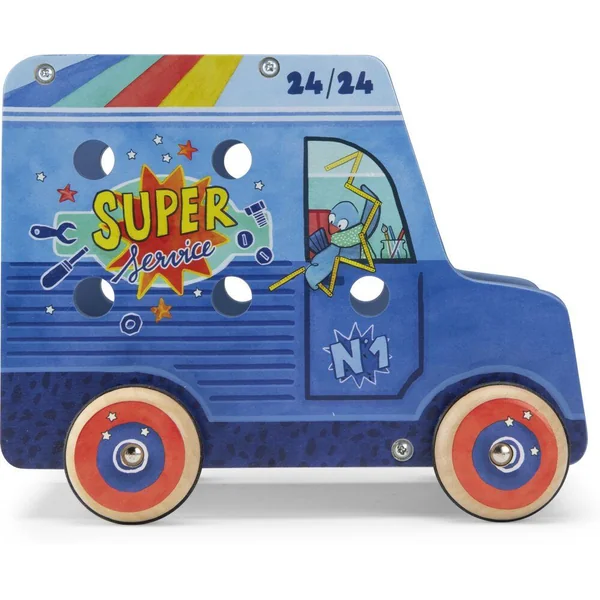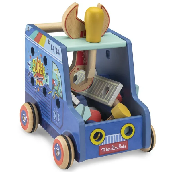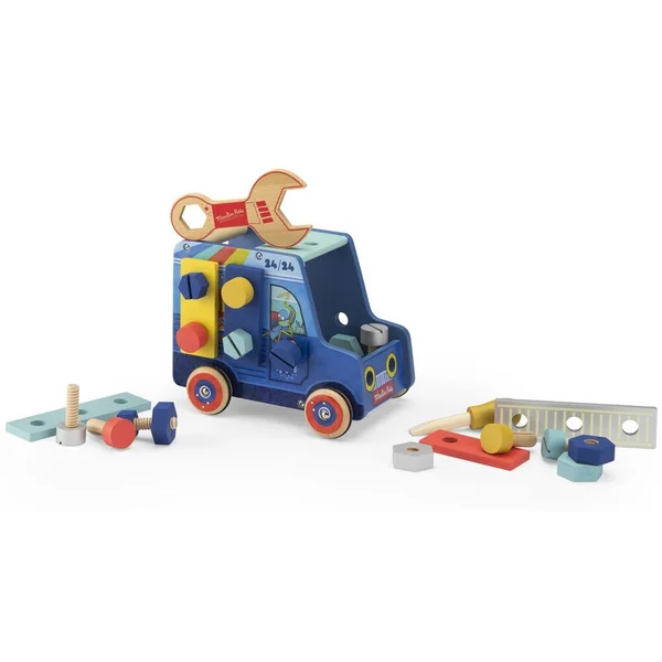 La camionnette du bricoleur Puce & Pilou est l’outil idéal pour les bricoleurs en herbe. Vis, écrous, clé à molette, tournevis…tout y est ! Intégralement en bois et joliment illustrée, elle permettra à l’enfant d’imiter papaet maman tout en s’amusant !
