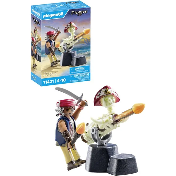 PLAYMOBIL 71421 Canonnier des pirates – Pirates – Avec un pirate, un canon et des projectiles – 20 pièces.