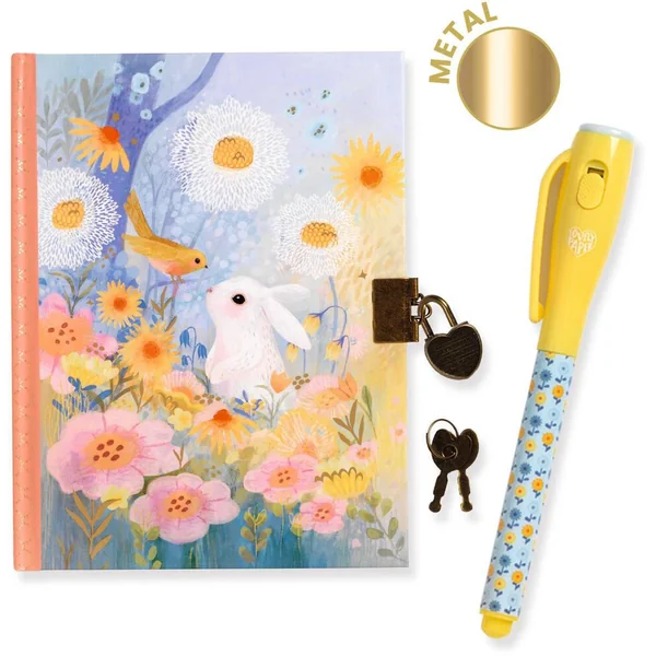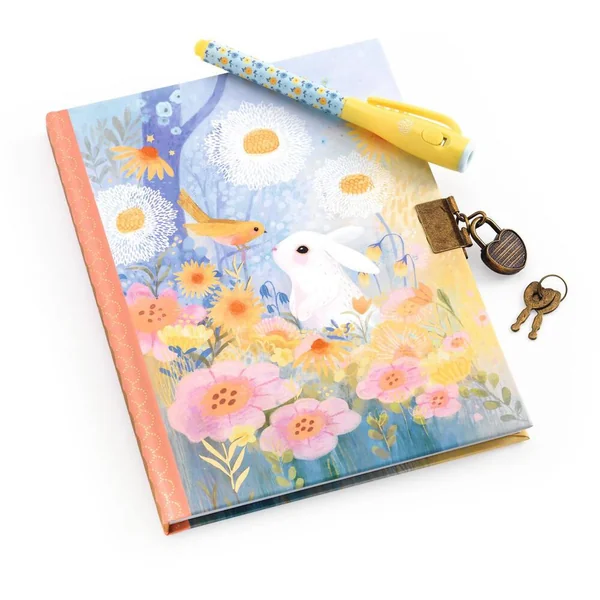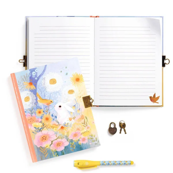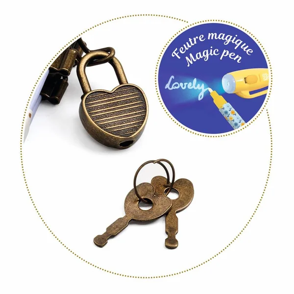 Un petit carnet secret avec un feutre à encre invisible pour écrire et dessiner tous ses secrets ! Il suffit de passer la lampe à UV dessus pour que tous les secrets soient révélés. Ce carnet est composé de 88 pages lignées, toutes illustrées de petits dessins. Il possède un cadenas en forme de cœur et deux clés pour garder toutes ses histoires à l’abri des regards indiscrets. Lovely Paper by Djeco, une collection de papeterie raffinée et délicate aux jolies illustrations, pour illuminer le quotidien des grands et des petits.