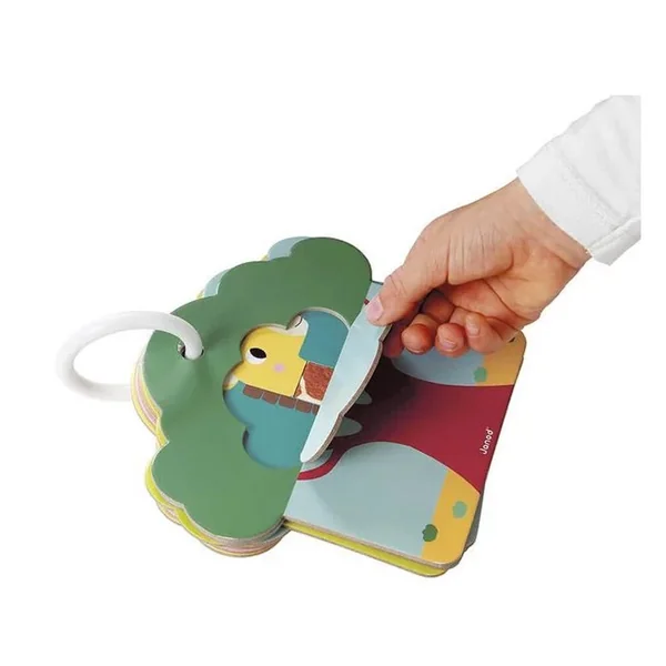 Partez à la découverte des animaux de la savane ! En soulevant le feuillage du baobab, votre enfant découvrira l’une des 6 cartes texturées sur le thème des animaux de la savane. Qui est le plus doux ? Le croco ou la girafe ? Ce jouet d’éveil est idéal pour développer le sens du toucher. Il est aussi très pratique à transporter partout grâce à son anneau en plastique. Jouet d’éveil pour les enfants à partir de 12 mois.