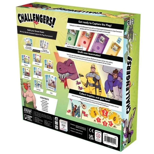 Dans Challengers, vous êtes le sélectionneur. Par une mécanique de deck building astucieuse, vous allez constituez votre paquet et l’améliorer au fur et à mesure des affrontements. Choisissez les bons éléments de votre équipe, imaginez les combinaisons et les synergies qui vont pouvoir se créer. C’est votre sélection qui va faire de vous un potentiel vainqueur ! Pendant le match, votre équipe devra se débrouiller toute seule, il sera trop tard !