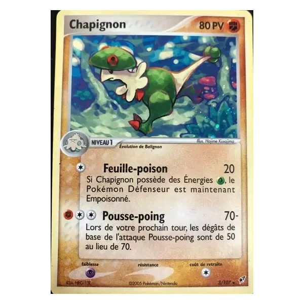 Découvrez Chapignon (dx003), une carte Pokémon de l’extension Deoxys, provenant du bloc Ex. Idéale pour compléter votre collection, cette carte Holo Rare plaira autant aux collectionneurs qu’aux joueurs.