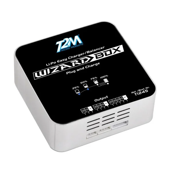 Wizard Box, chargeur Equilibreur Li-Po 2-4S 220V compact, simple et sûr. Permet de charger rapidement un pack d’accus Li-Po de 2 à 4 éléments, les plus couramment utilisés en modélisme. Alimentation secteur 220V et indication de l’état de charge par LEDs.