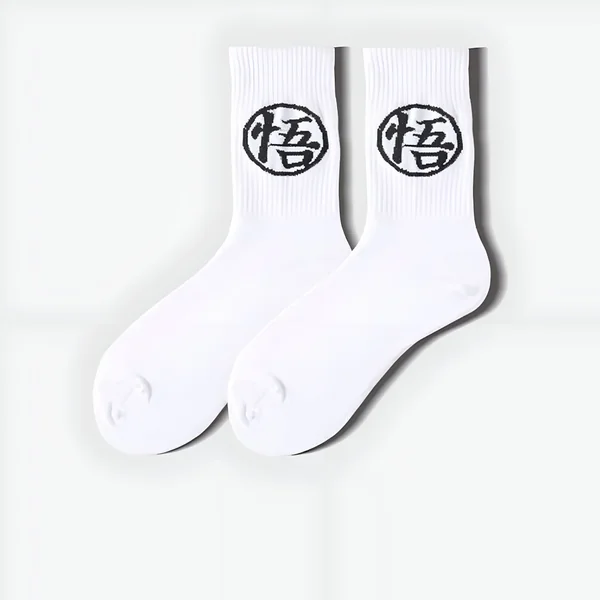 Le design de ces chaussettes allie l’esthétique minimaliste à la puissance évocatrice des codes visuels de Dragon Ball. L’inscription GOKU, en lettres capitales et d’une couleur contrastée, fait immédiatement référence au personnage. Le kanji Go, quant à lui, est représenté de manière sobre et élégante, au sein d’un cercle blanc, évitant tout superflu pour mieux souligner son importance. Cette simplicité permet de les porter au quotidien, que vous soyez un disciple des arts martiaux ou un fan de la première heure, sans jamais verser dans l’ostentatoire. Ces chaussettes s’adaptent à toutes les situations, du dojo à la rue, en passant par les réunions entre amis.