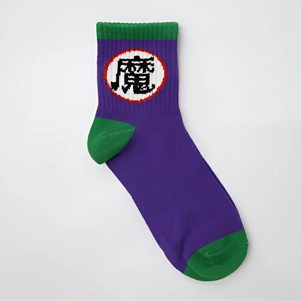 Ces chaussettes ne sont pas de simples pièces de tissu ; elles incarnent l’esprit de Piccolo, le guerrier namekien passé du côté obscur à celui des alliés de Goku. Le kanji « ma« , brodé avec soin, est un clin d’œil à son passé démoniaque et à sa force brute. Ce détail iconographique permet de se connecter à l’évolution du personnage, de ses débuts en tant qu’ennemi juré à sa position actuelle d’allié et de mentor. Porter ces chaussettes, c’est aussi afficher sa détermination, sa persévérance et son courage, à l’instar de Piccolo affrontant les plus grands dangers.