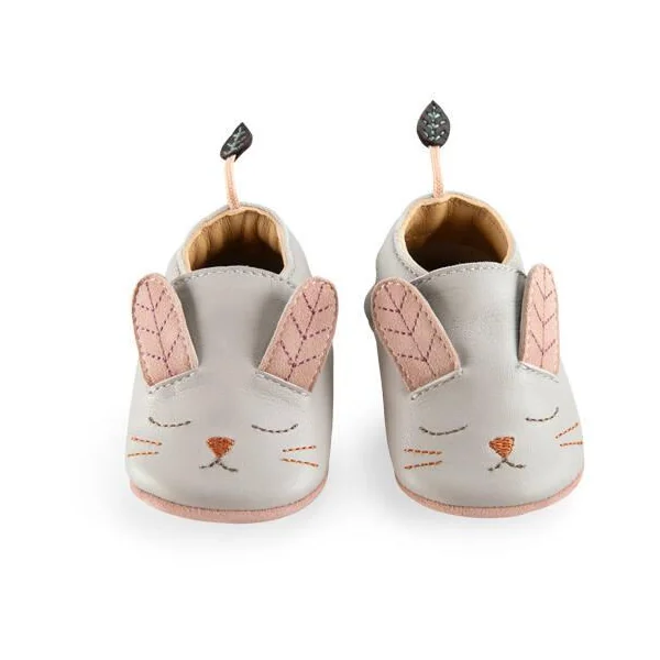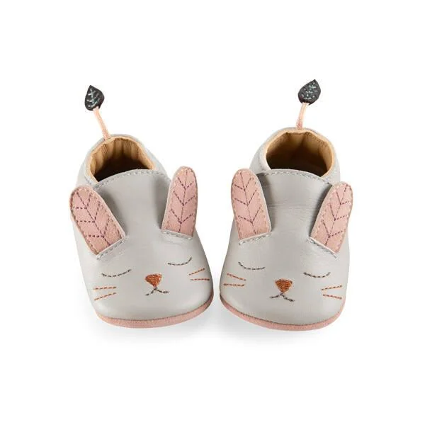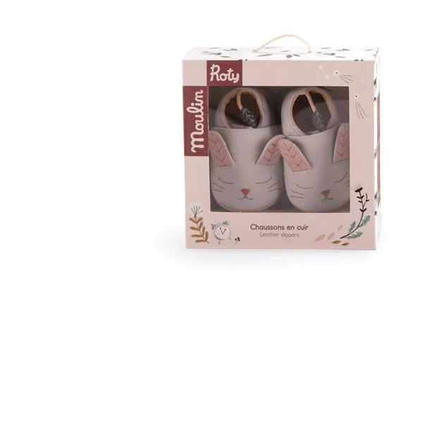 Chaussons lapin 6/12m en cuir souple, avec fermeture à scratch, à la forme large et arrondie adaptée aux pieds en pleine croissance. Doublés, ils disposent d’une semelle en cuir velours antidérapante et d’une semelle intérieure amovible avec mousse.