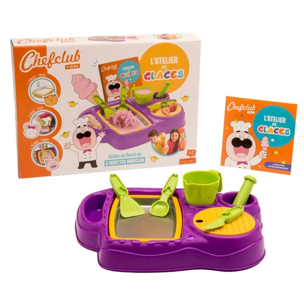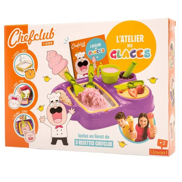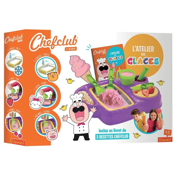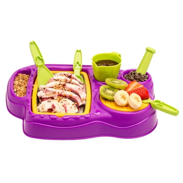 Réalise tes propres crèmes glacées à l’aide d’un plateau glacé à mettre au congélateur. Accessoires inclus.
