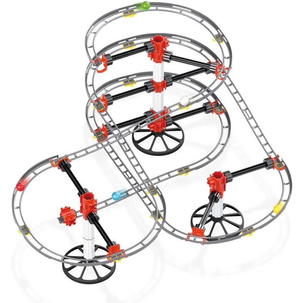 Crée ton propre circuit à billes avec cet amusant jeu de construction. Tu peux copier les modèles de l’emballage ou bien t’amuser à inventer tes propres circuits. Les pièces peuvent se combiner de différentes façons et garantissent des possibilités de jeu illimitées. Compatible avec toutes les version de la ligne Skyrail et Roller Coaster.