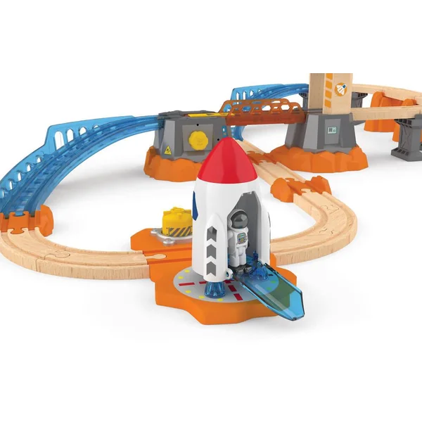 Participez à des missions spatiales avec des figurines d’astronautes et toute une série de véhicules, y compris la locomotive fusée aux ailes pliables, pour un jeu ludique intergalactique.