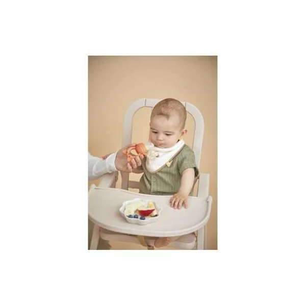Ensemble, la grignoteuse et le bavoir offrent une expérience pratique et sécurisée qui accompagne la diversification alimentaire, stimule l’éveil sensoriel et la motricité, et transforme chaque repas en un moment de découverte et de plaisir pour bébé.