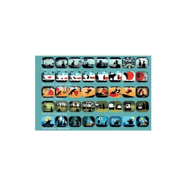 Ce coffret cadeau sur le thème des contes comprend un bloc de programmes, des tickets de cinéma, une lampe et 5 disques diapositives. Chaque disque projeté sur le mur raconte une histoire : jeu d’ombres sur fonds colorés et la magie opère.