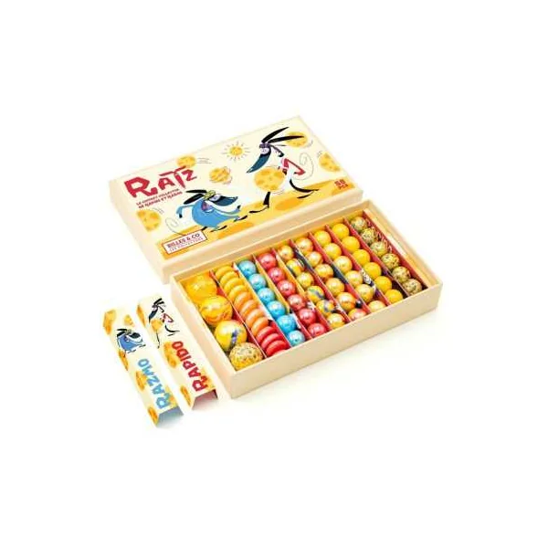Ce superbe coffret cadeau contient un assortiment varié de billes, calots et galets aux couleurs éclatantes, inspiré de l’univers délirant de la série animée « Ratz », créée par le célèbre studio français Xilam.