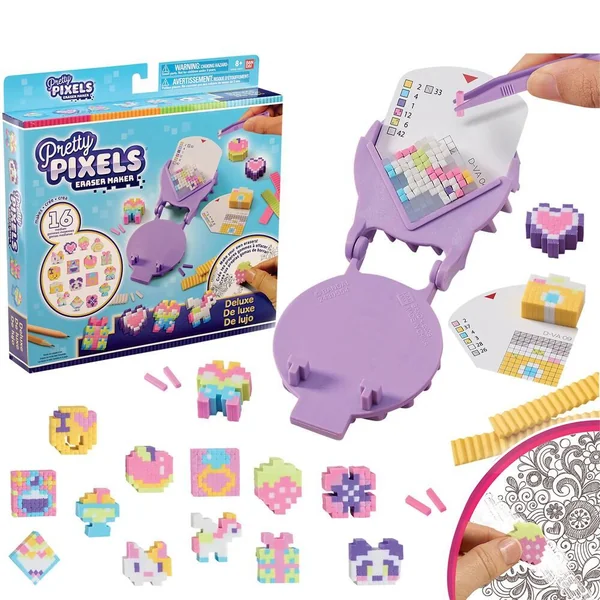 Ce set contient tout le nécessaire pour fabriquer 16 gommes. Contient : 1 moule,1 pince, 60 barrettes de gommes et 16 patrons. Crayons non fournis.