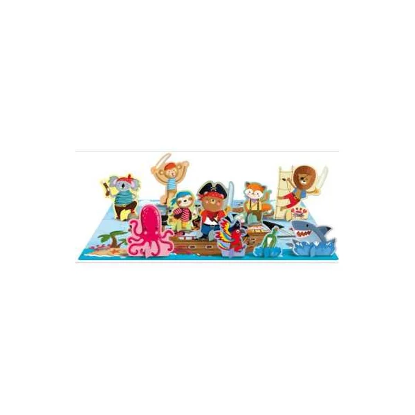 De grandes aventures t’attendent avec les pirates! Feuilletez le livret, construisez le puzzle et apprenez à reconnaître les différents éléments du monde des pirates. Embelli de détails irisés, ce coffret contient un livre de 10 pages, un puzzle de 40 pièces et 10 figurines prédécoupées à assembler et à placer sur le puzzle.