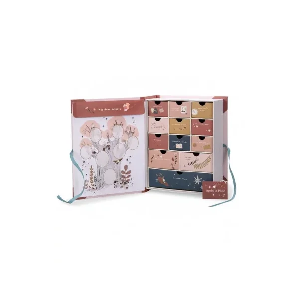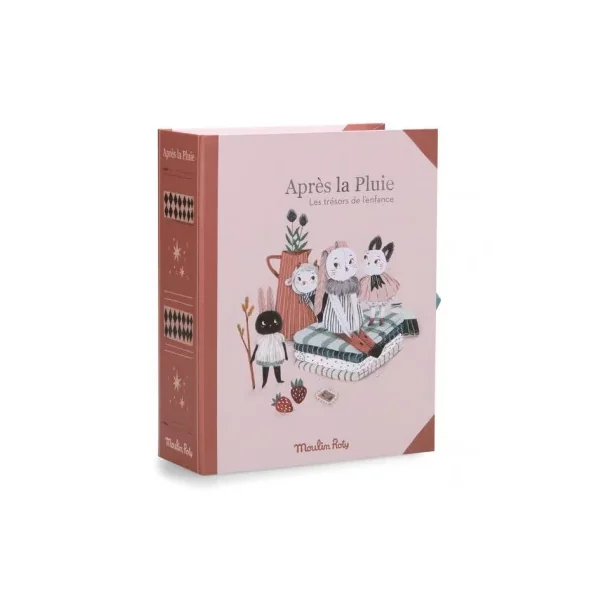 Découvrez le coffret naissance de la collection Après la pluie de Moulin Roty, un coffret à trésors pour ranger dans chacun des tiroirs toutes les douceurs de l’enfance. Il se referme avec des liens et reprend les illustrations poétiques des personnages de la collection à l’intérieur, comme à l’extérieur.